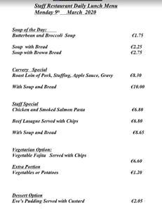 Menus For Monday 9th March!